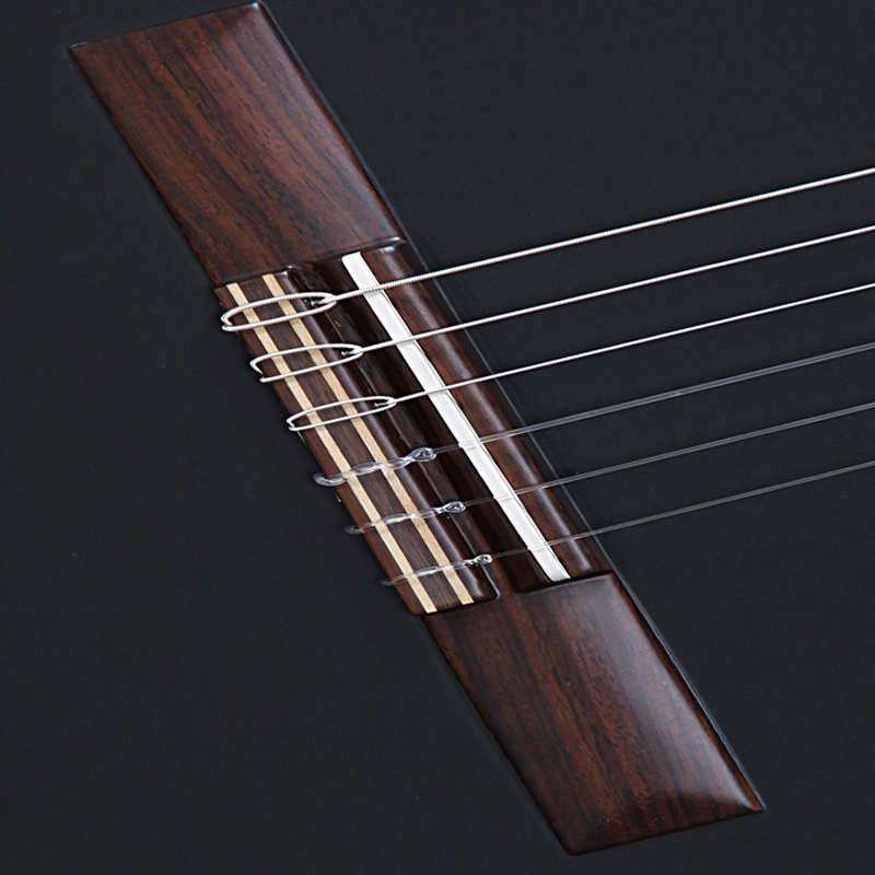 For the elaboration of the bridges, both for the saddle and for the nut, melamine has been used, a synthetic material that is highly transmitter of sound and contributes to a round and defined sound.