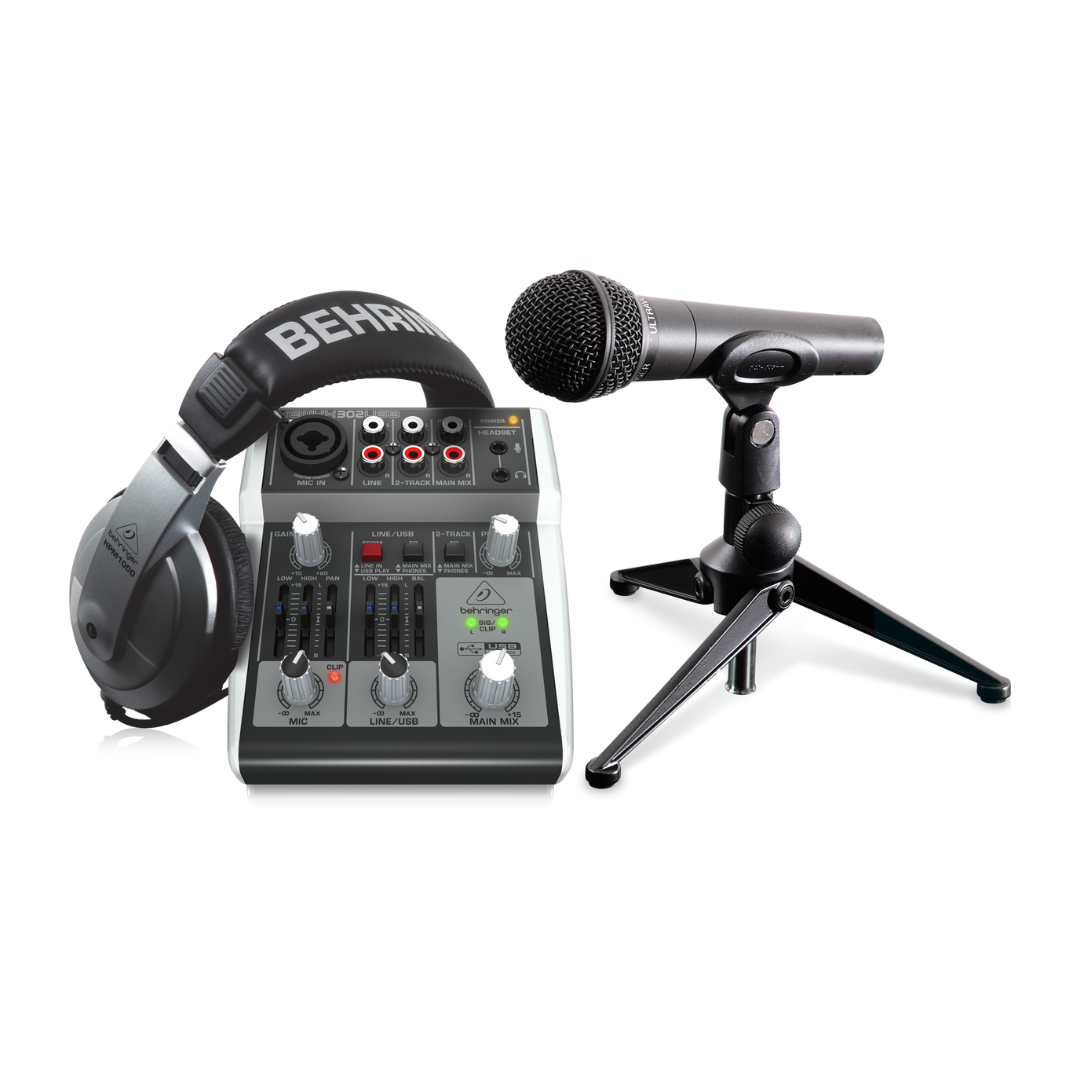 • Get a full recording studio “out of the box” including XENYX 302USB mixer with built in USB/audio interface, XM8500 microphone, HPM1000 headphones and more