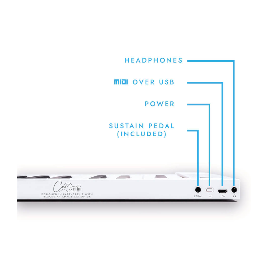 Blackstar Carry-On BA215020-Z 49 Keys Folding Piano with Touch Sensivity, Midi Over Bluetooth – White
