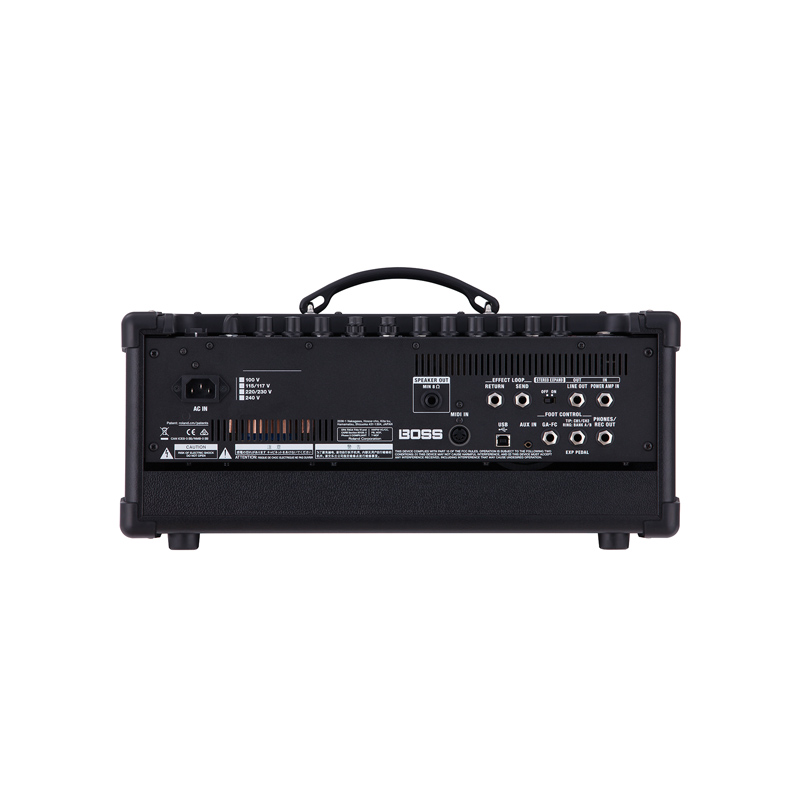 | Connectors | INPUT jack: 1/4-inch phone type POWER AMP IN jack: 1/4-inch phone type LINE OUT jack: 1/4-inch phone type SEND jack: 1/4-inch phone type RETURN jack: 1/4-inch phone type SPEAKER OUT jack: 1/4-inch phone type (Minimum 8 ohm) REC OUT/PHONES jack: Stereo 1/4-inch phone type EXP PEDAL/CTL CH1/CH2 jack: 1/4-inch TRS phone type GA-FC jack: 1/4-inch TRS phone type AUX IN jack: Stereo miniature phone type USB port: USB B type MIDI IN connector AC IN jack |