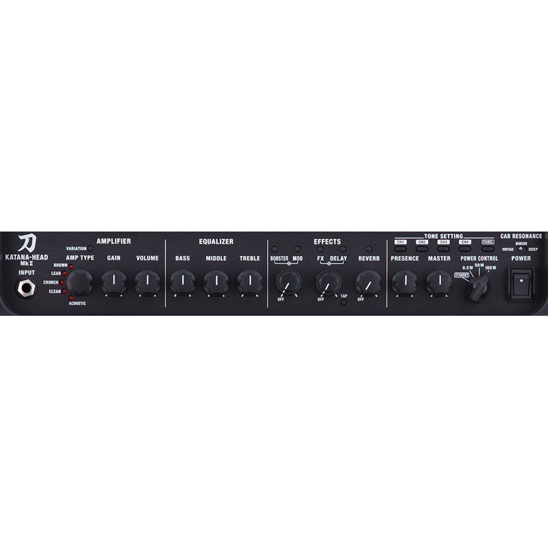 | Controls | POWER switch MASTER knob PRESENCE knob POWER CONTROL switch (STANDBY, 0.5 W, 50 W, 100 W) CAB RESONANCE switch (VINTAGE?MODERN?DEEP) [AMPLIFIER] [EQUALIZER] [MULTI EFFECT] [TONE SETTING] [STEREO EXPAND] |