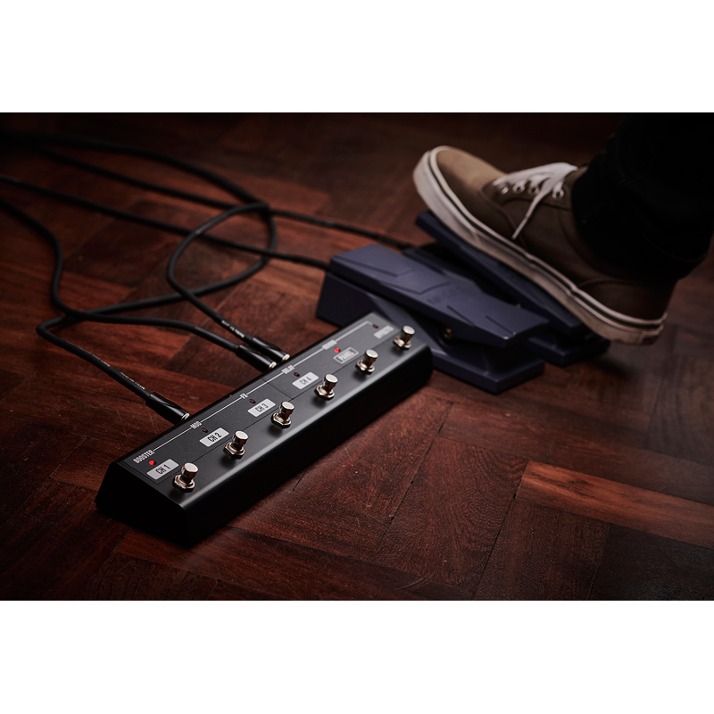 The optional GA-FC foot controller is the perfect partner for the Katana-Head MkII. It connects with a single cable, requires no external power, and features a slim, rugged profile that takes up minimal space. With six footswitches, you can directly recall Tone Settings and independently turn the five effects sections on/off. The GA-FC also supports external footswitches and expression pedals, with default assignments that include tap tempo, bank selection, foot volume, and Pedal FX. A large variety of custom assignments are available via BOSS Tone Studio, including expression pedal control of up to three parameters at once.