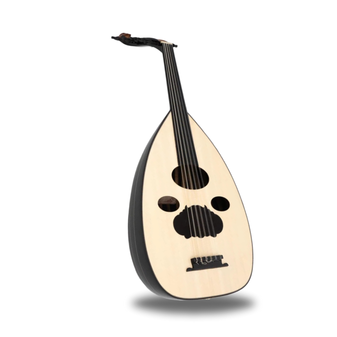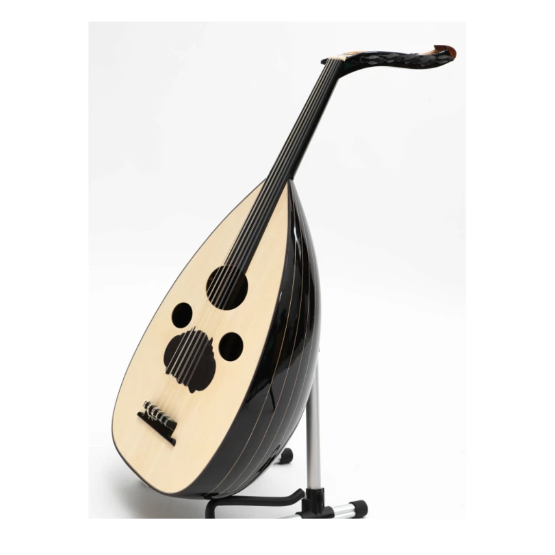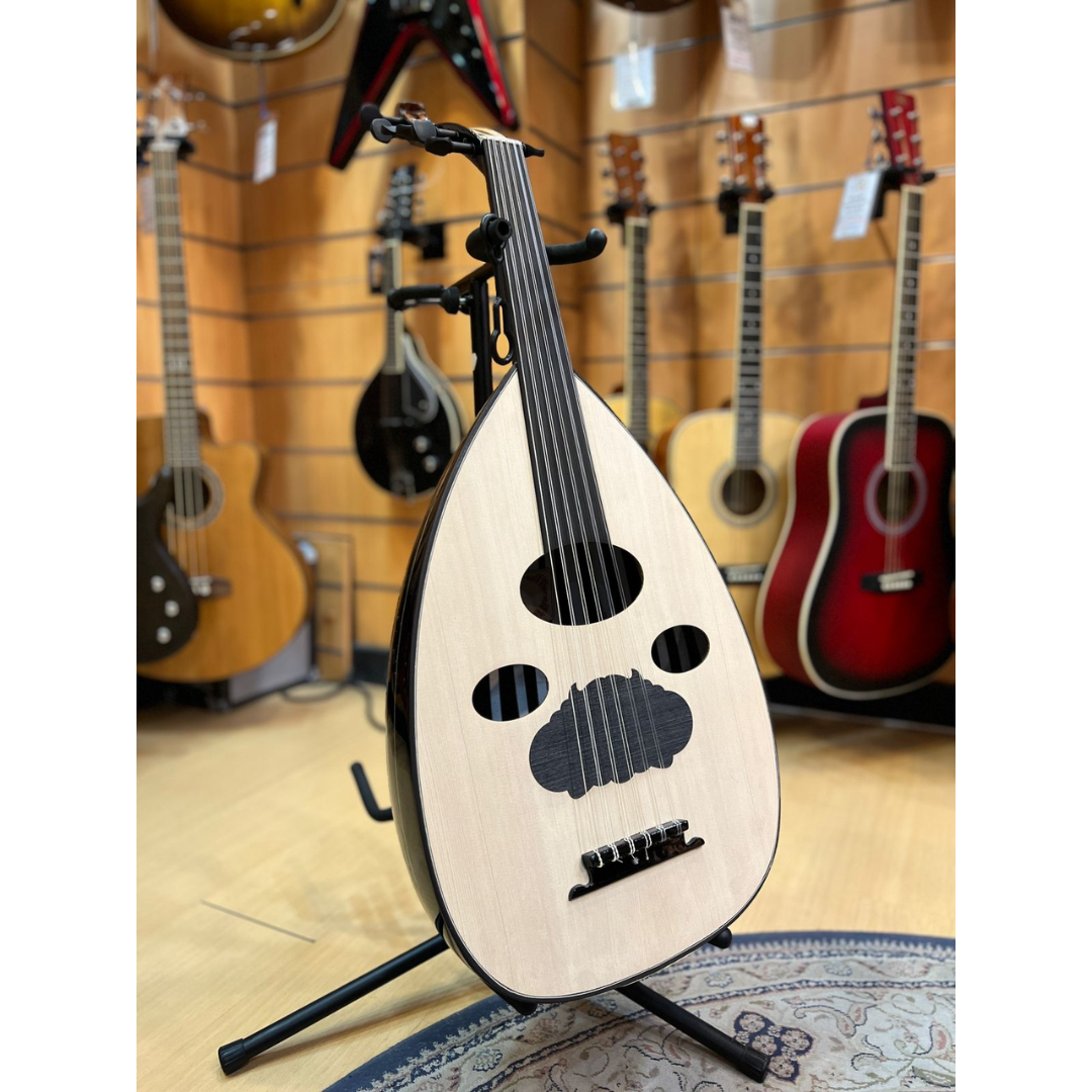 This Arabic Oud with built-in pickup features beautiful black walnut wood, a bone nut, Dupont strings, and quality hand-fitted pegs. It has a pleasant sound and it’s easy to play. It’s if you’re looking for a good quality low-budget oud this could be the perfect instrument for you. Comes with soft case and risha (picks)