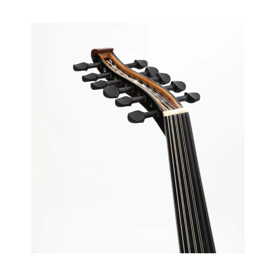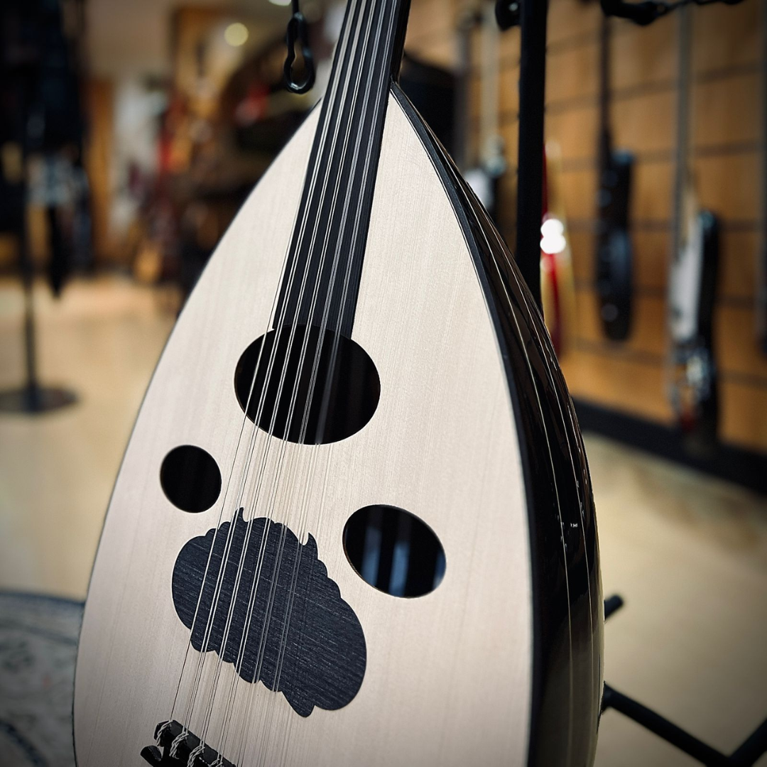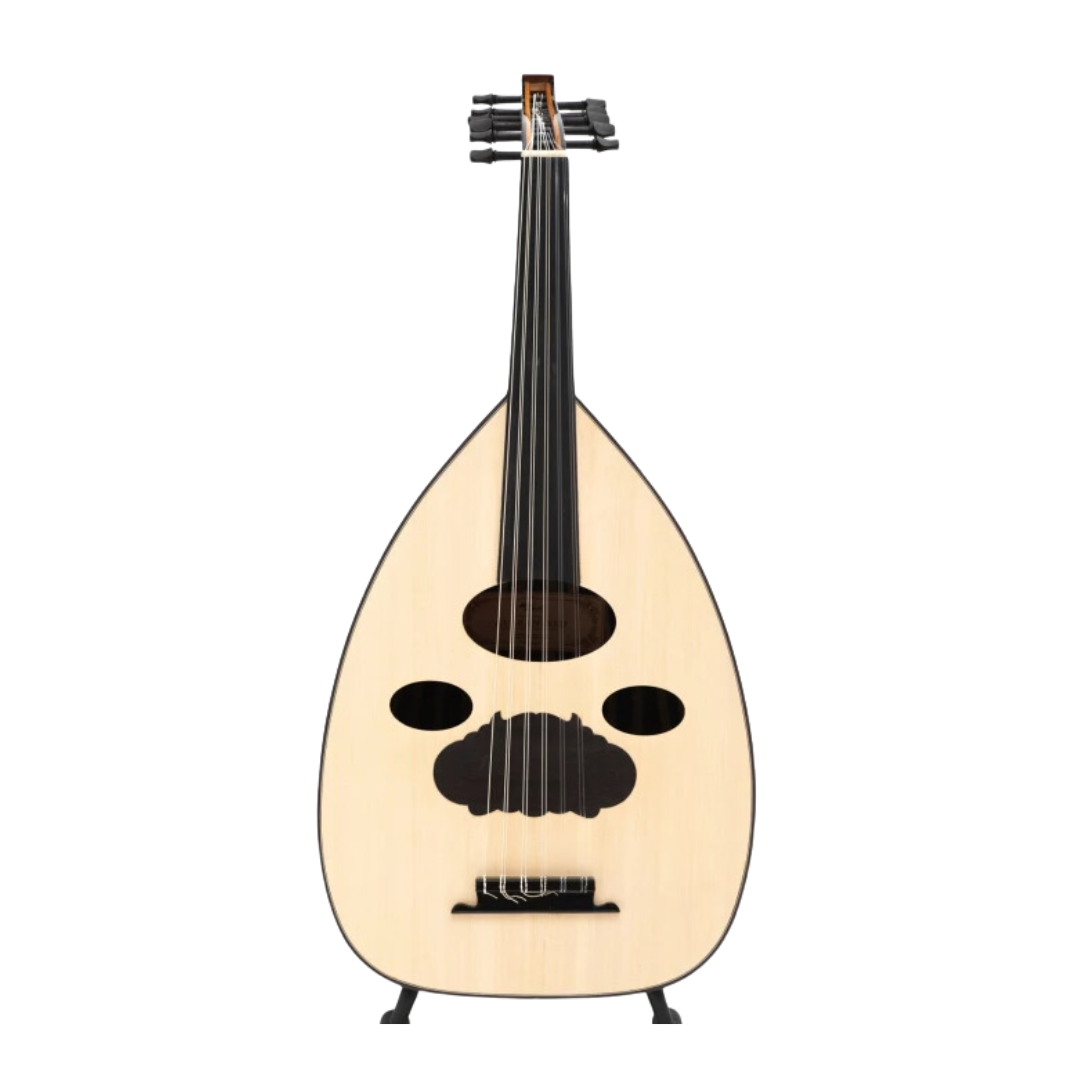 This Arabic Oud with built-in pickup features beautiful black walnut wood, a bone nut, Dupont strings, and quality hand-fitted pegs. It has a pleasant sound and it’s easy to play. It’s if you’re looking for a good quality low-budget oud this could be the perfect instrument for you. Comes with soft case and risha (picks)