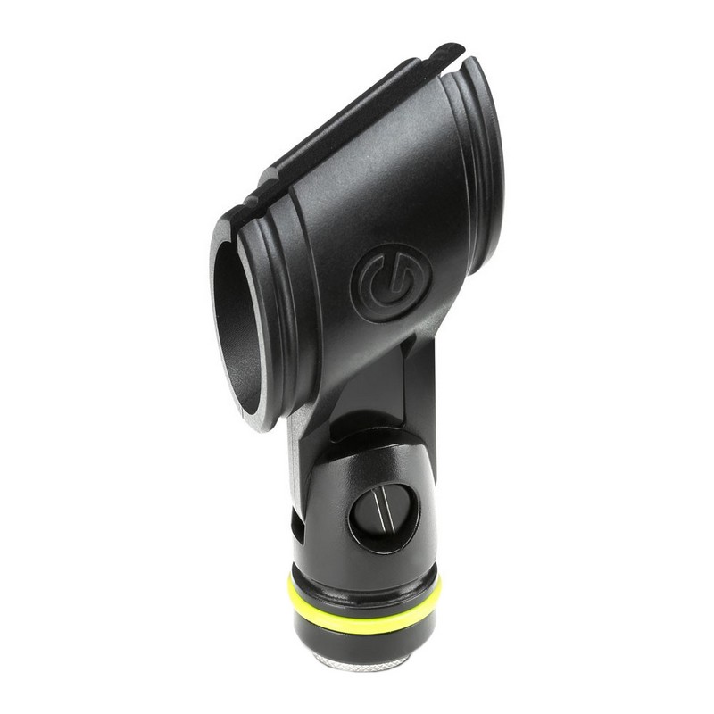 The GMSCLMP 25 is compatible with most handheld dynamic microphones and acommodates shaft diameters from 24 to 35 mm. The unbreakable clip holds your mic firmly in place and swivels to aim it as needed. The Gravity microphone clip includes a 3/8″ adapter.