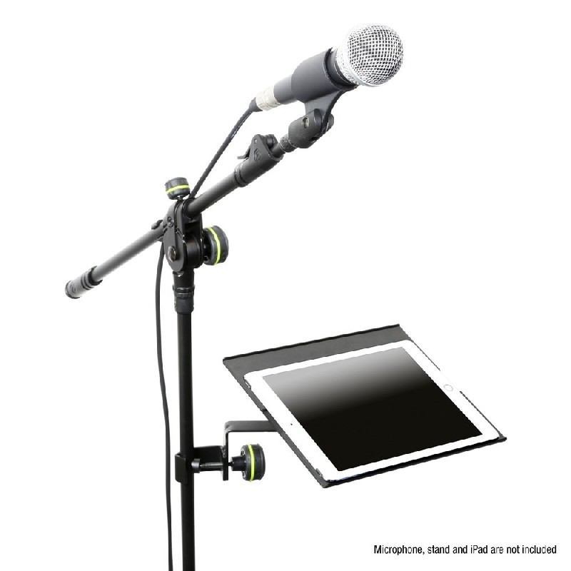 The MA TRAY 1 is a 360° adjustable steel tray that easily attaches to any microphone stand. The 250 x 195 mm size is large enough to accommodate tablet computers and holds accessories such as capos, picks or small percussion instruments.
