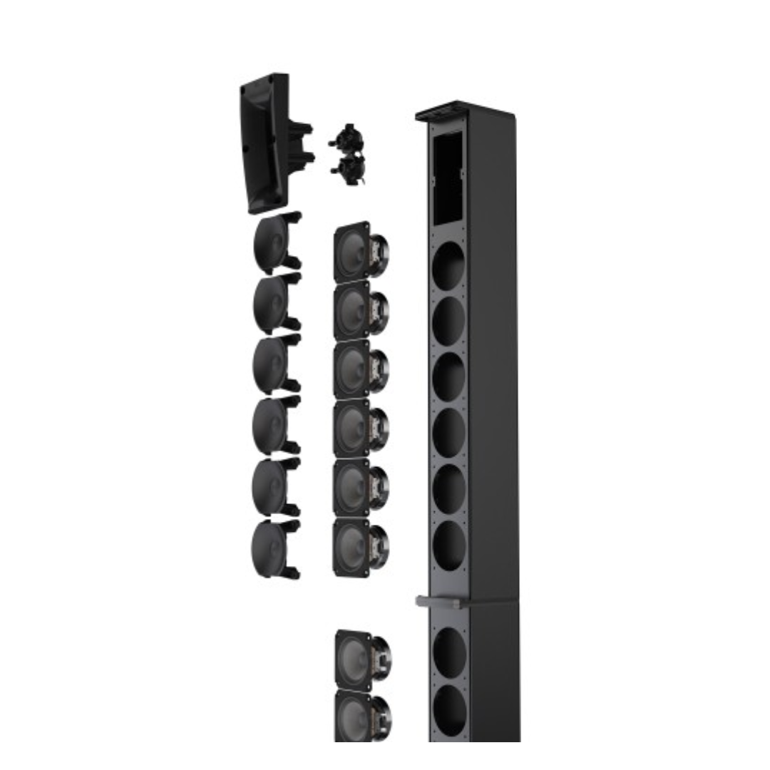 With its sleek and elegant design, the MAUI 28 G3 looks very appealing. The two aluminium column elements sit at the front edge of the subwoofer, further enhancing the seamless visual impression. The columns are equipped with 12 x 3.5” midrange drivers and 2 x 1” tweeters, providing an even sound distribution with constant horizontal dispersion in combination with the innovative phase plug design. In addition, the BEM-optimised waveguide ahead of the tweeters carries the high frequencies even to the very rear audience areas.