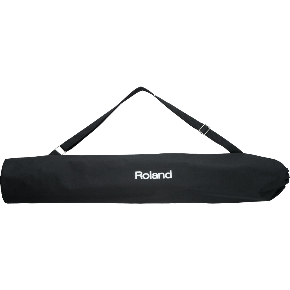 For optimal projection, compatible Roland amplifiers can be mounted on this companion speaker stand, which telescopes for custom height adjustment. A carrying bag with shoulder strap is included.